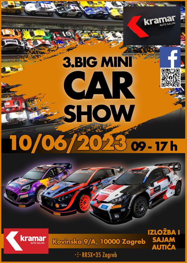 Vrata Autosalona Kramar, u zagrebačkom Jankomiru, povodom održavanja BIG MINI Model Car Show-a, u subotu 10. lipnja 2023., otvorit će se u 9:00 h, a kako je planirano, posjetitelji će modele moći razgledati i kupiti do 17 h. Adresa je Kovinska 9a, a parking je osiguran na prostoru oko salona. U sklopu manifestacije bit će organizirana i ugostiteljska ponuda.