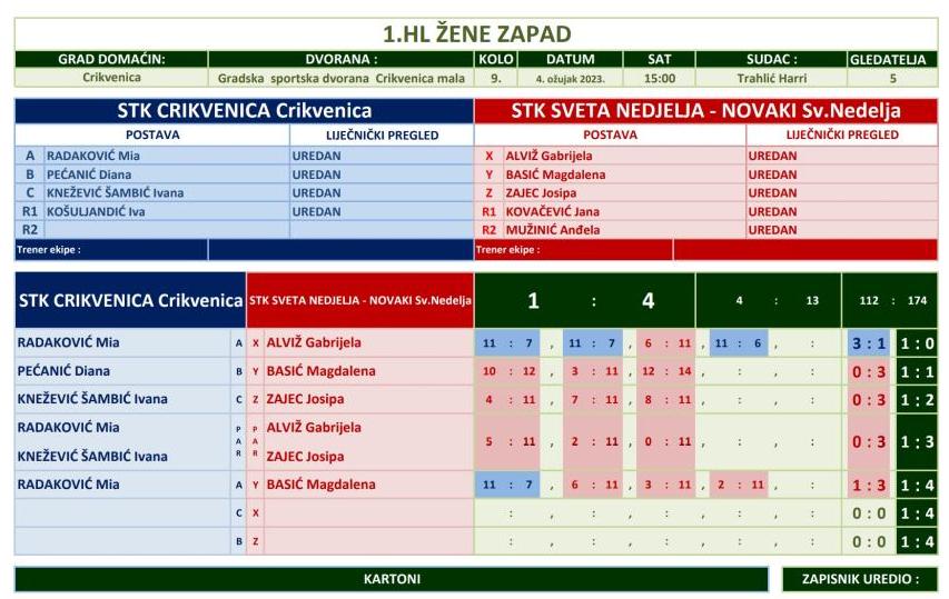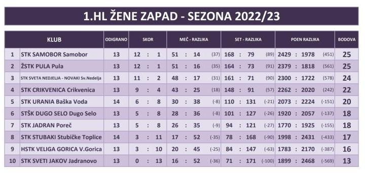 05.03.2023. STK Sveta Nedelja odigrala je 12. i 13. kolo kao gost u Svetom Jakovu i Crikvenici. Sa nove dvije pobjede STK Sveta Nedelja zauzima 3. mjesto s realnim izgledima za osvajanje 1. mjesta i povratkom u SUPERLIGU!